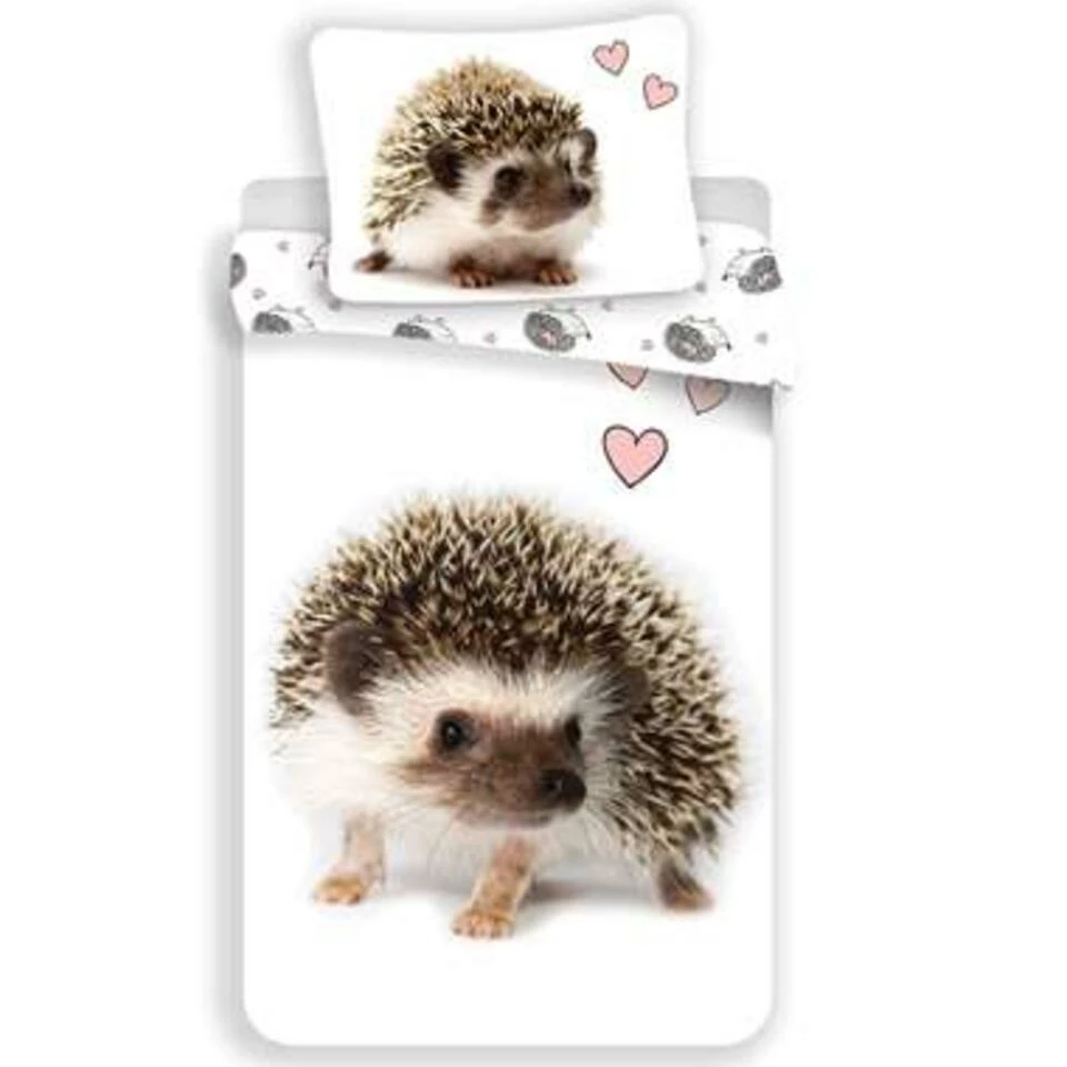 Animal Pictures Dekbedovertek Egel. Deze kleine egel laat zich graag zien in de herfst. De bijzondere beestjes zijn bijna een baken van het herfstseizoen geworden. Ze zijn ook zo schattig! Wie had ooit gedacht dat dit stekelige beestje zo knuffelig kon zijn? Slaap nu onder een zacht dekbedovertrek, gemaakt van katoen, een ademende stof om heerlijk onder te kunnen slapen. Dit dekbedovertrek is een aanwinst voor iedere fan van de natuur!