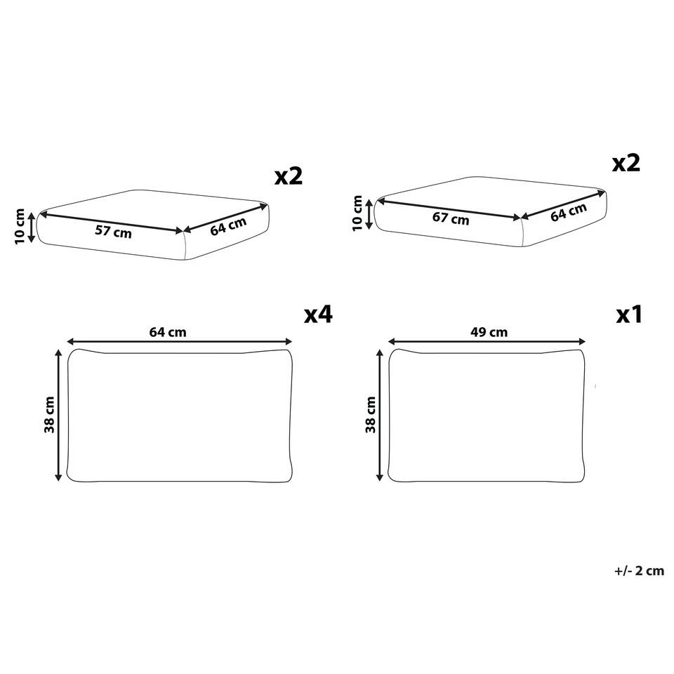 Kussenset voor loungeset AVOLA. Met een praktische, extra set kussenslopen ben je altijd flexibel. Geef je loungemeubels een andere look door er een andere kleur kussens op te leggen, of gun jezelf de tijd om de kussenslopen van je andere set te wassen. Zo zijn je zitkussens dus altijd klaar voor gebruik! De set bestaat uit zitkussens en rugkussens (in totaal 9 delen). De bekleding is gemaakt van hoogwaardig polyester en bleken niet door UV-straling. Dankzij de verborgen ritsen zijn de onderhoudsvriendelijke hoezen afneembaar en wasbaar.