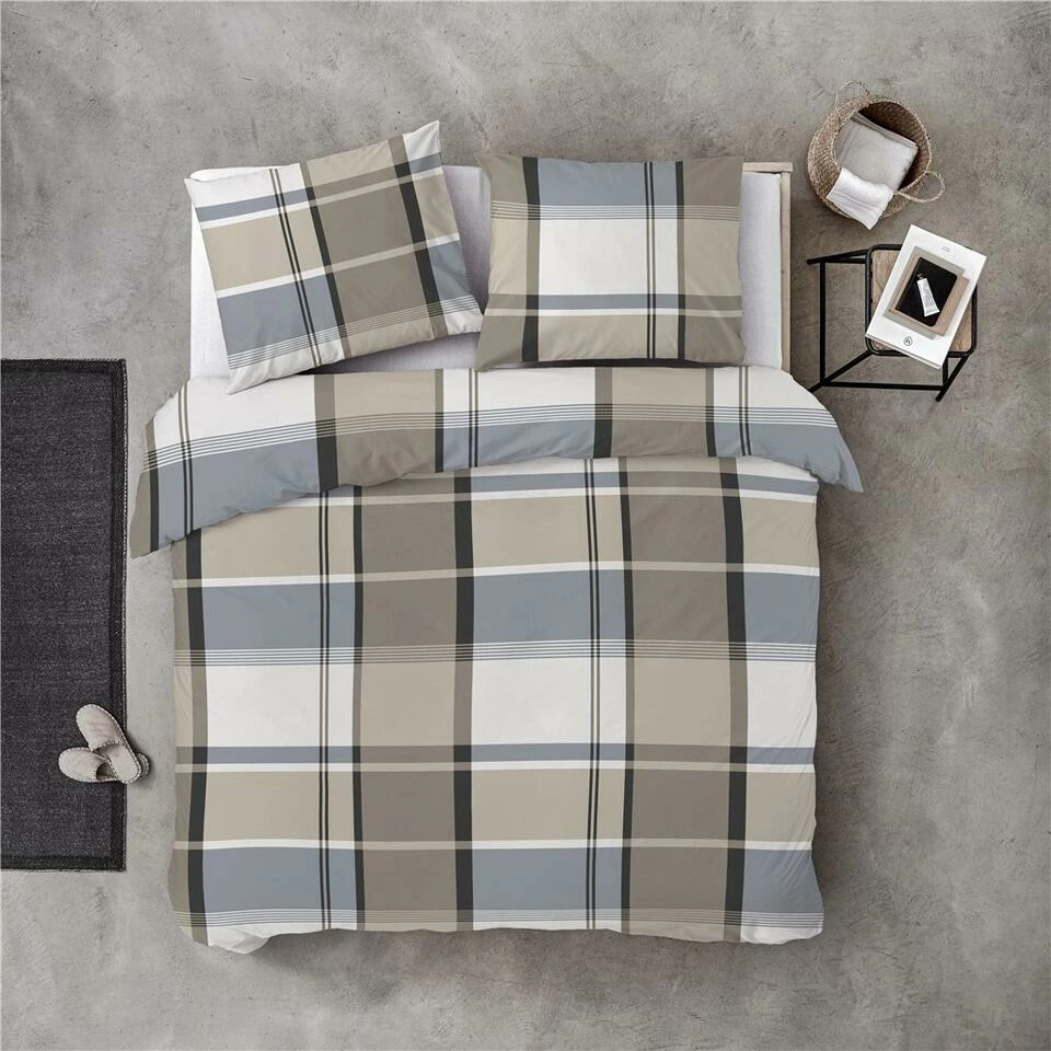 Een klassieker onder de dekbedovertrekken, het geruiten dekbedovertrek. De zachte kleuren en het rustige motief geeft rust in de slaapkamer. De grote ruit wordt opgebouwd uit verschillende soorten strepen over het dekbedovertrek.