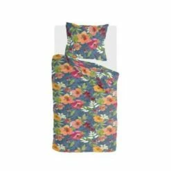 Een romantisch dekbedovertrek vol prachtige bloemen in diverse kleuren. De donkerblauwe ondergrond biedt een mooi contrast tegenover de kleurrijke bloemen. Uitgevoerd in luchtig en comfortabel katoen.