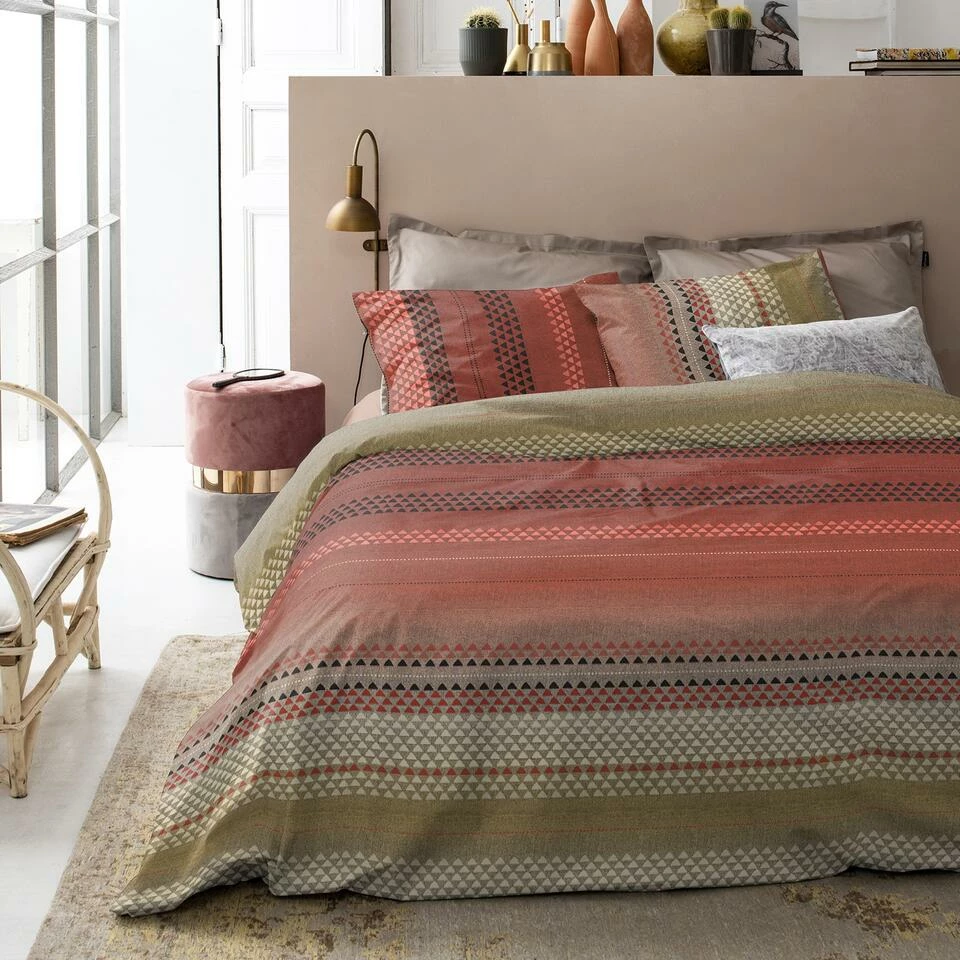 Met het Cinderella dekbedovertrek Navarra krijgt de slaapkamer direct een warm en fris gevoel. Het dekbedovertrek is voorzien van een heel eigen dessin waarin het lijkt alsof er allerlei structuren zijn gebruikt – dit in combinatie met de contrastrijke kleuren zorgt voor een uniek ontwerp.
