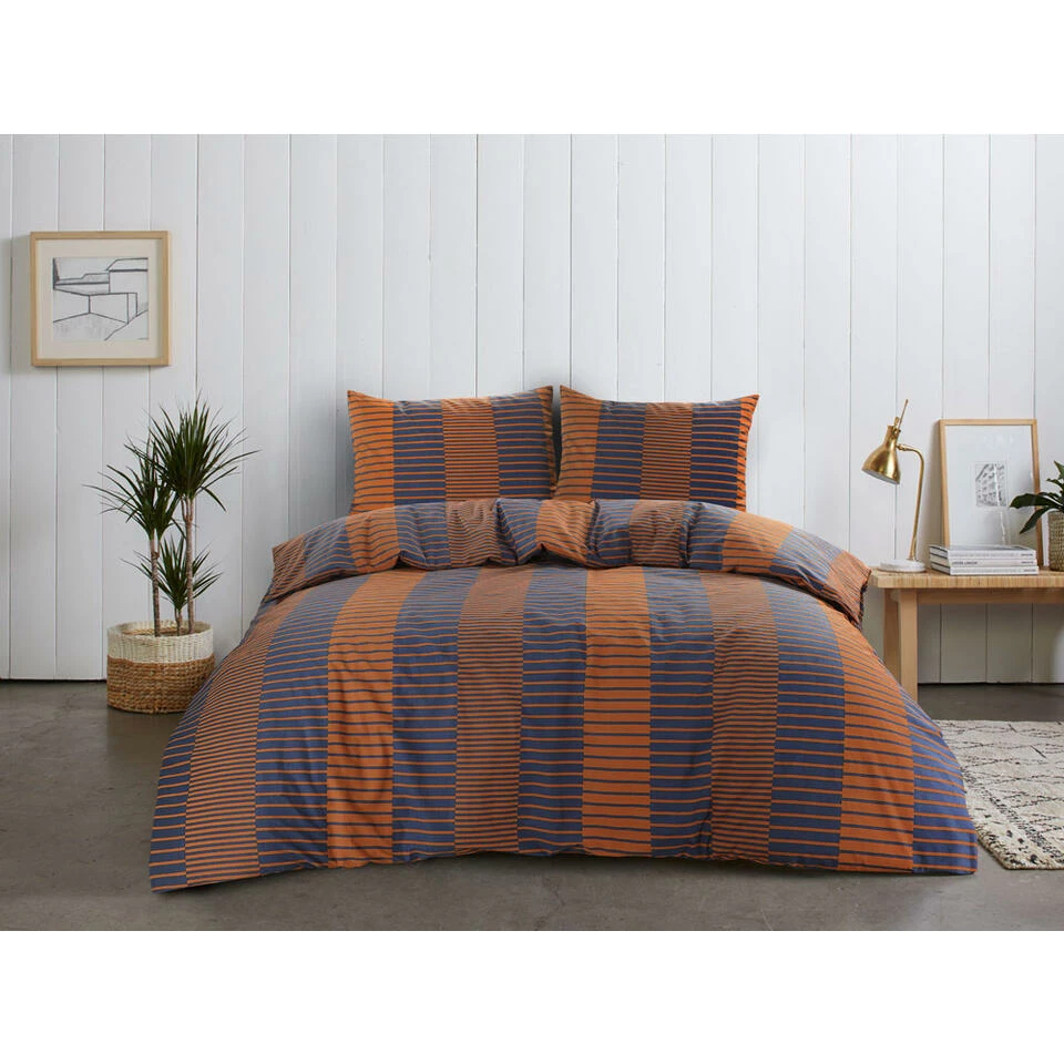 Dekbedovertrek Zef is blauw/caramel met een streepdessin en heeft een afmeting van 140×200/220 cm. Het dekbedovertrek is gemaakt van heerlijk zacht katoen en heeft een dubbel doorlopende instopstrook. Hierdoor is hij geschikt voor dekbedden met een lengte van 200 cm en 220 cm. Kruip jij er straks heerlijk in weg?