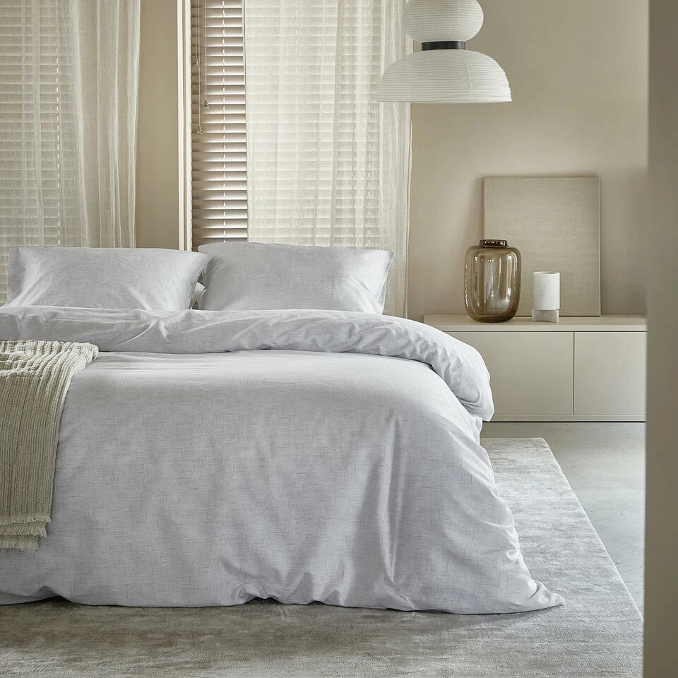 Het 100% biologische katoenen dekbedovertrek Ebba van Damai is een effen dekbedovertrek waarmee je een serene stijl neerzet in de slaapkamer. Het dessin heeft een printeffect van slubgaren wat goed aansluit op het duurzame en minimalistische thema. De Ebba staat garant voor jarenlang comfort en een fijne nachtrust. Uitgevoerd in stijlvolle kleuren passend in ieder soort slaapkamer.