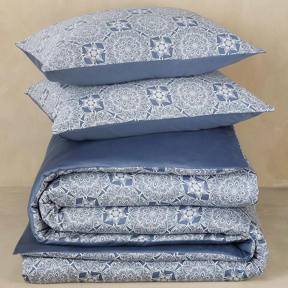 De Witte Lietaer Dekbedovertrek Katoen Satijn, Henna Blue Horizon. Prachtig satijn katoenen dekbedovertrek in hotelmaat met een hoge weefdichtheid. Het bedrukt bedlinnen is een lichtgewicht katoen-satijn dat ultra comfortabel aanvoelt door de satijnbinding, het gekamd katoen en de extra zijdeglans. Het dekbedovertrek, alsook de kussenslopen, zijn dubbelzijdig en dus omkeerbaar. Het dekbedovertrek heeft een wijde flessenhals -behalve voor de Duitse maten- en kan daardoor makkelijk over het dekbed getrokken worden. De Witte Lietaer staat bekend om hun kwaliteitsproducten en rijke geschiedenis. Kortom, met een product van De Witte Lietaer koopt u een voortreffelijke ervaring.