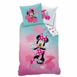 Disney Minnie Mouse Dekbedovertrek, Tropics. Dit vrolijke dekbedovertrek van Minnie Mouse heeft een zomerse uitstraling. Het is altijd vakantie in je kamer met dit dekbedovertrek op je bed!