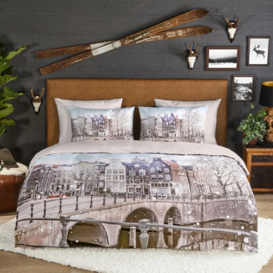 Dekbedovertrek “Amsterdam” van Good Morning met grachtenpanden, in de kleur “Multi” is gemaakt van 100% geruwde 100% Cotton/ Flannel. Deze warme, zachte stof is zeer geschikt voor de wintermaanden, ademend en vocht absorberend.