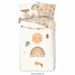 Dekbedovertrek “Balance” van Good Morning met regenbogen, in de kleur “Zand” is gemaakt van 100% Cotton. Deze kwaliteit is ademend, vocht absorberend en voelt zacht en soepel aan.