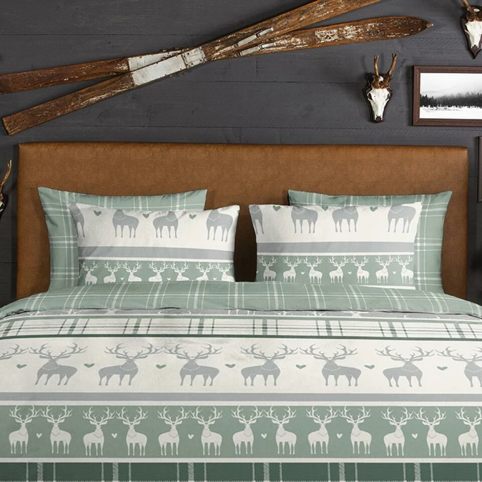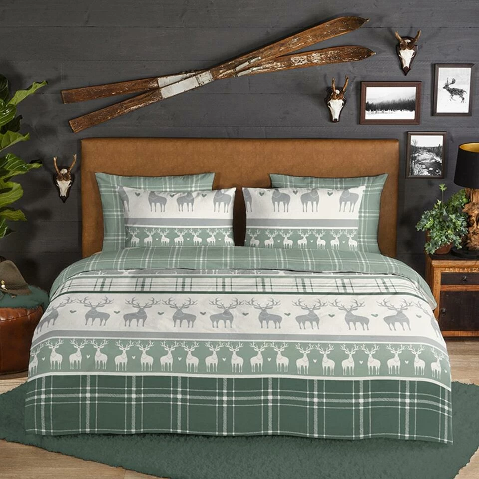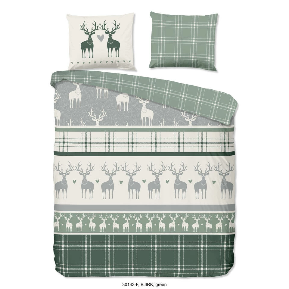 Dekbedovertrek “Bjirk” van Good Morning met rendieren, in de kleur “Groen” is gemaakt van 100% geruwde 100% Cotton/ Flannel. Deze warme, zachte stof is zeer geschikt voor de wintermaanden, ademend en vocht absorberend.
