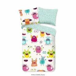 Dekbedovertrek “Booh” van Good Morning met monsters, in de kleur “Multi” is gemaakt van 100% Cotton. Deze kwaliteit is ademend, vocht absorberend en voelt zacht en soepel aan.