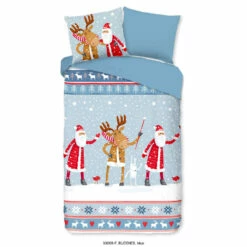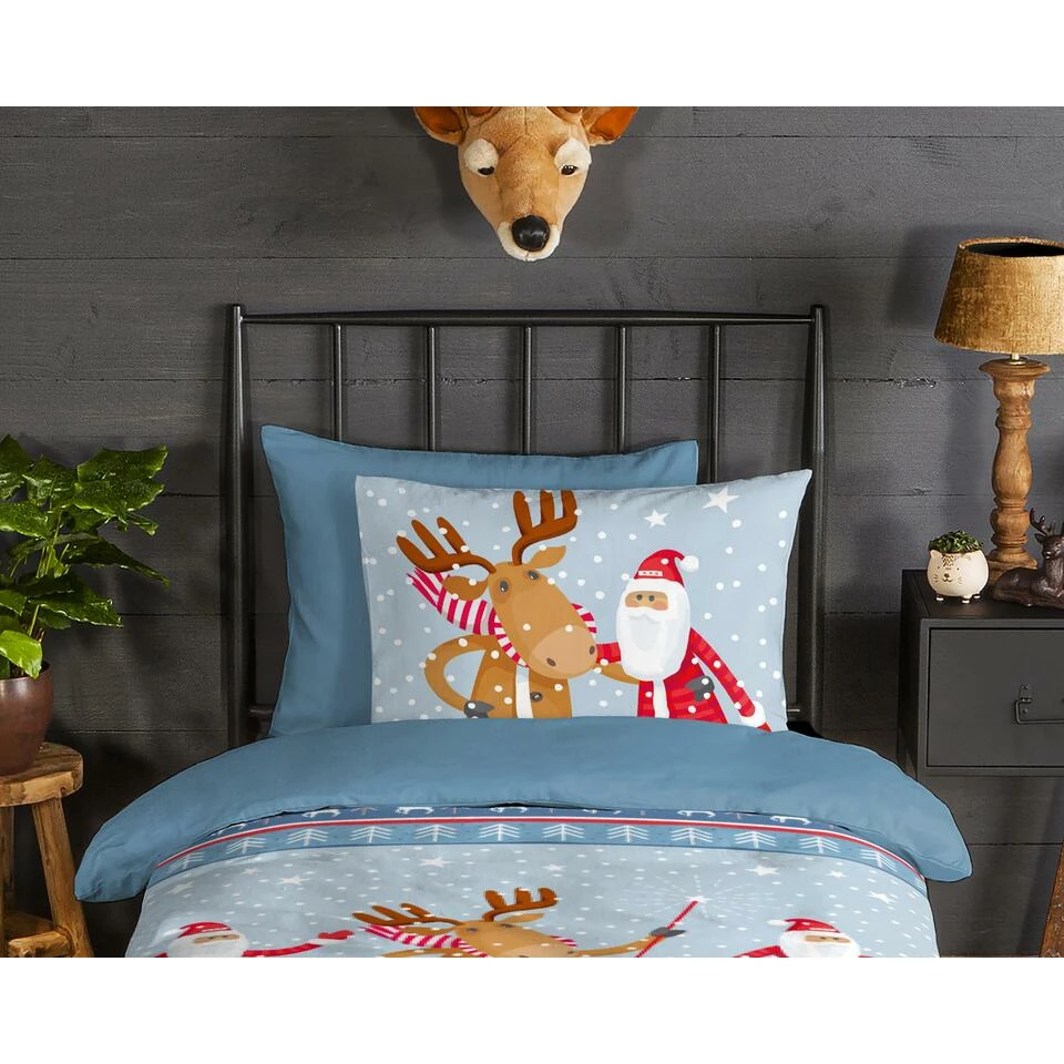 Dekbedovertrek “Buddies” van Good Morning met kerstman, in de kleur “Blauw” is gemaakt van 100% geruwde 100% Cotton/ Flannel. Deze warme, zachte stof is zeer geschikt voor de wintermaanden, ademend en vocht absorberend.