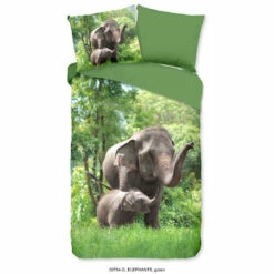 Good Morning Dekbedovertrek “Elephants” – Groen – (140×220 Cm)