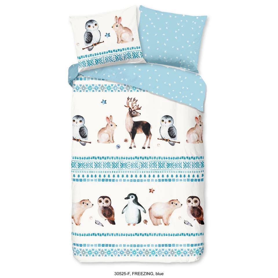 Dekbedovertrek “Freezing” van Good Morning met dieren, in de kleur “Blauw” is gemaakt van 100% geruwde 100% Cotton/ Flannel. Deze warme, zachte stof is zeer geschikt voor de wintermaanden, ademend en vocht absorberend.