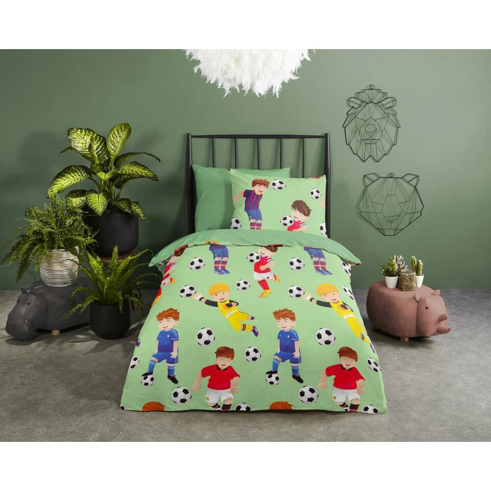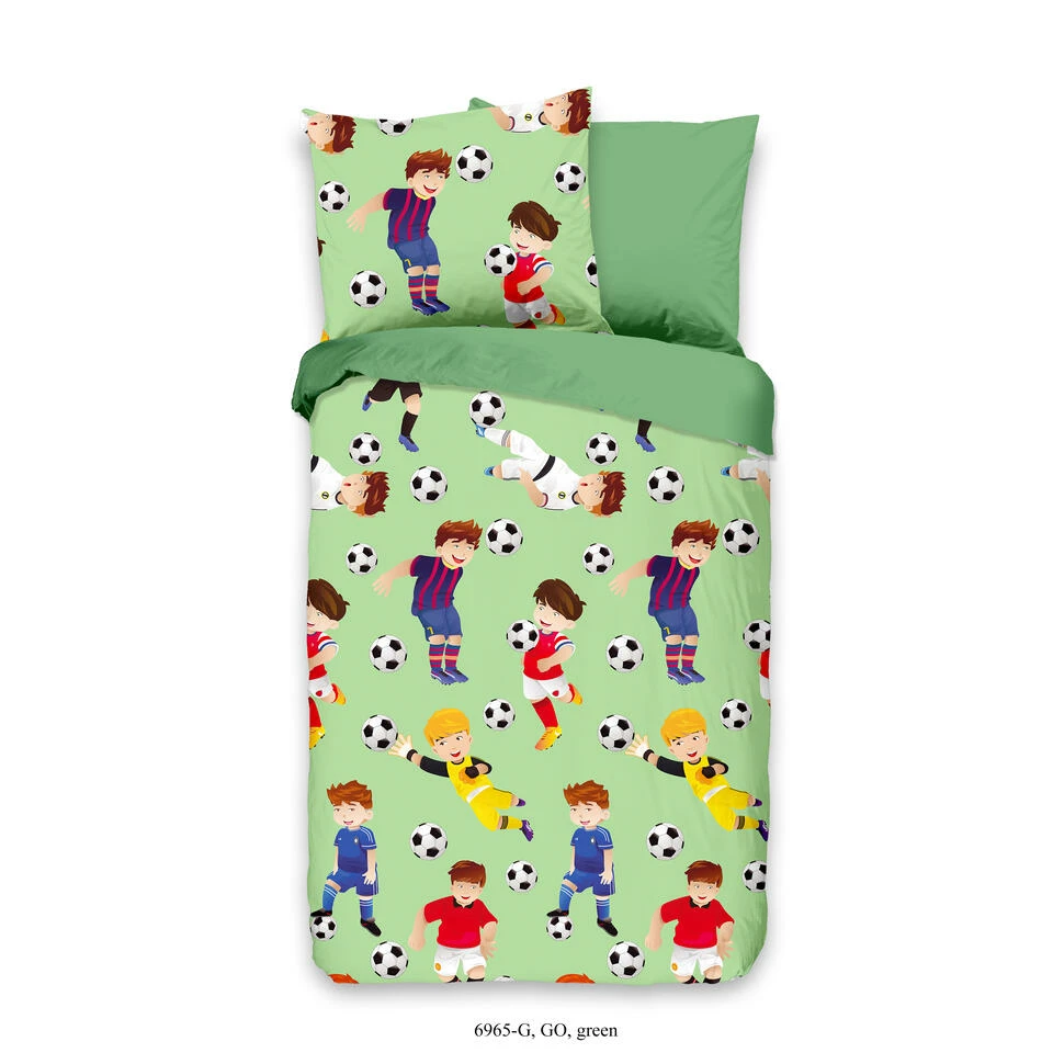 Dekbedovertrek “Go” van Good Morning met voetbal, in de kleur “Groen” is gemaakt van 100% Cotton. Deze kwaliteit is ademend, vocht absorberend en voelt zacht en soepel aan.