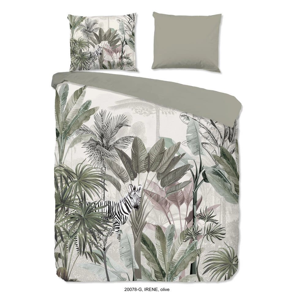 Dekbedovertrek “Irene” van Good Morning met jungle print, in de kleur “Groen” is gemaakt van 100% Cotton. Deze kwaliteit is ademend, vocht absorberend en voelt zacht en soepel aan.