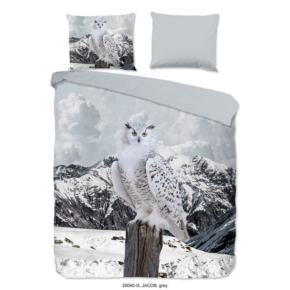 Dekbedovertrek “Jacob” van Good Morning met sneeuwuil, in de kleur “Grijs” is gemaakt van 100% Cotton. Deze kwaliteit is ademend, vocht absorberend en voelt zacht en soepel aan.