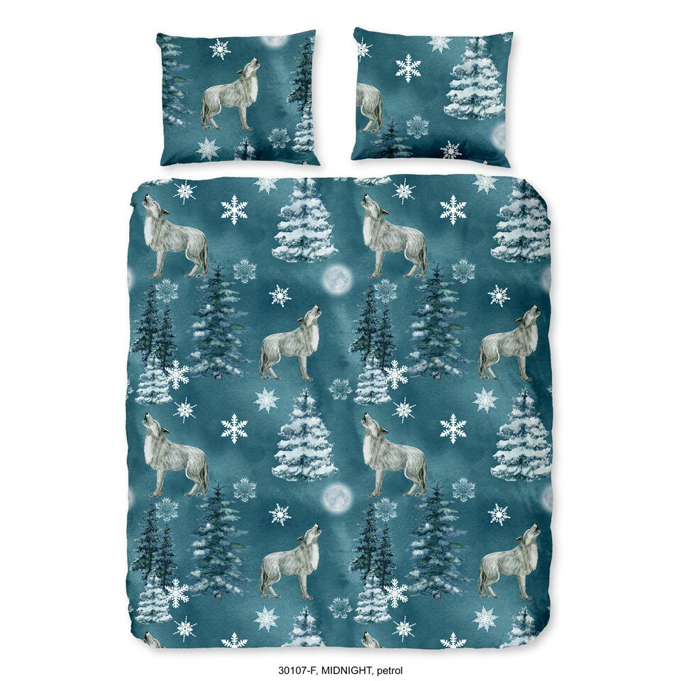 Dekbedovertrek “Midnight” van Good Morning met wolven, in de kleur “Petrol” is gemaakt van 100% geruwde 100% Cotton/ Flannel. Deze warme, zachte stof is zeer geschikt voor de wintermaanden, ademend en vocht absorberend.