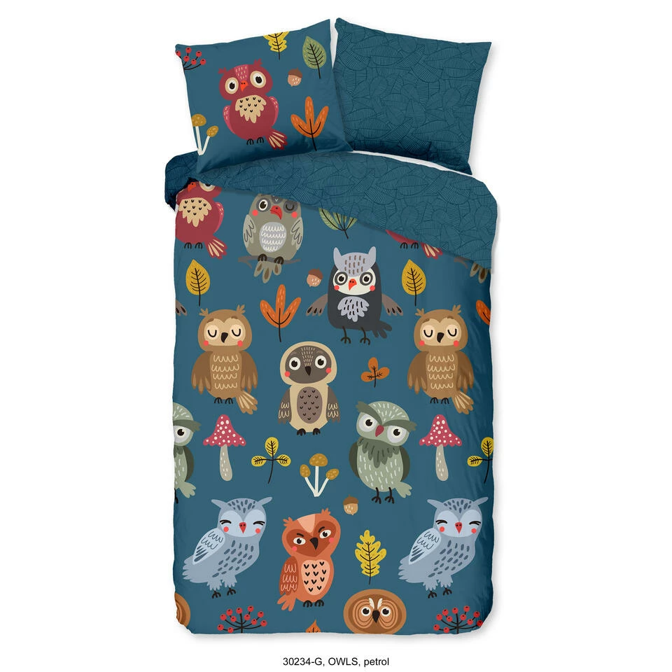 Good Morning Dekbedovertrek “Owls” – Petrol – (140×220 Cm)