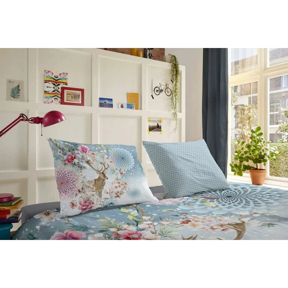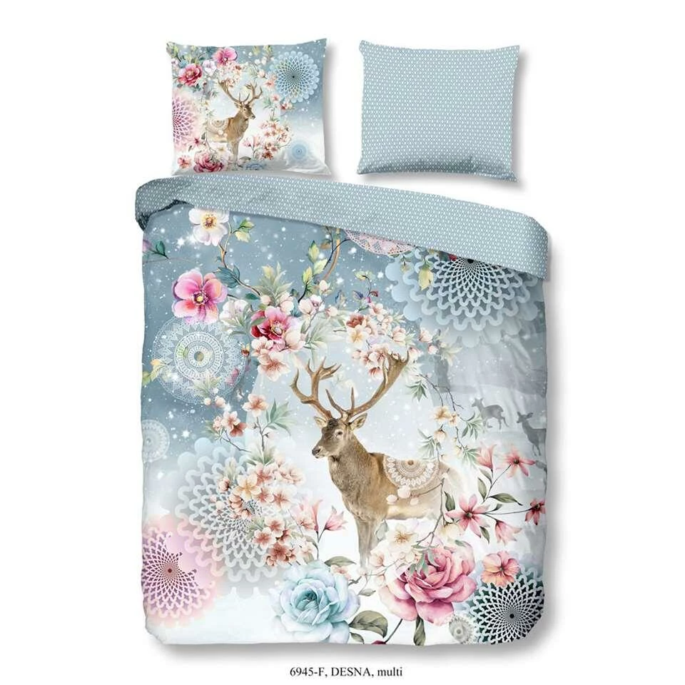 Dekbedovertrek Desna is bedrukt met verschillende mandala’s, bloemen en een hert. De achterzijde van dit dekbedovertrek is bedrukt met een klein bijpassend printje. Dekbedovertrek Densa is gemaakt van 100% katoen-flanel. Het dekbedovertrek heeft een instopstrook over de gehele breedte aan beide zijden. Het dekbedovertrek is inclusief instopstrook 240 cm lang.