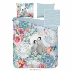 De set bestaat uit 1 dekbedovertrek met instopstrook (20 cm) van 240×240 cm en 2 kussenslopen van 60×70 cm.