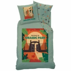 Jurrassic World dekbedovertrek Welcome. Fantastisch eenpersoons katoenen dekbedovertrek van Jurassic World. Leuk design van de prachtige toegangspoort tot dit bijzondere park. De mooie kleuren maken dit tot een mooi product. Het valt goed te combineren met een hoeslaken van Jurassic World Welcome.