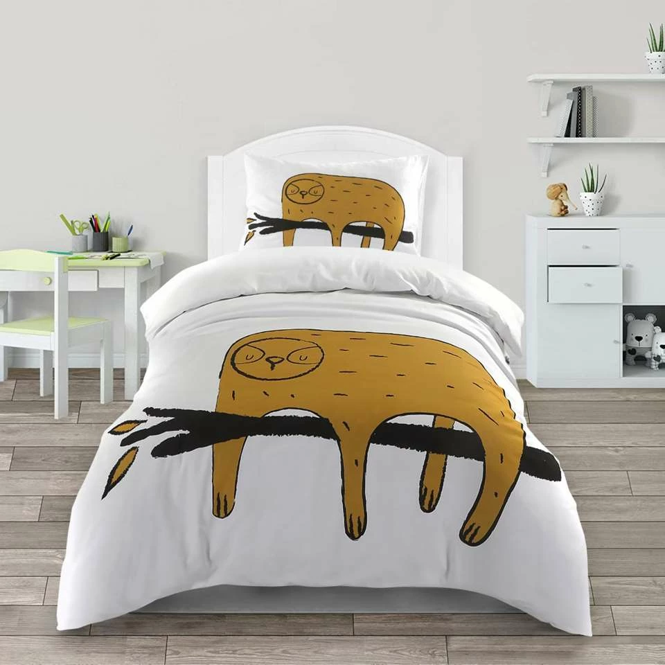 Dit prachtige dekbedovertrek met luiaard is een must have voor elke kinderslaapkamer. Dit dekbedovertrek is gemaakt van 100% katoen. Een ademende, vochtabsorberende stof wat erg sterk en stevig is. In combinatie met de ademende, vocht absorberende en warmteregulerend eigenschappen is dit ideaal voor alle seizoenen het is lekker cool in de zomer maar ook lekker warm in de winter.