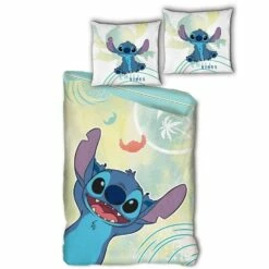 Lilo & Stitch dekbedovertrek, Chill Vibes. Een lief dekbedovertrek van de kleine alien Stitch. Deze ondeugd is een hit door de populaire films Lilo & Stitch. Stitch heeft een prominente plek gekregen op dit mooie dekbedovertrek en kussensloop. Het overtrek is dubbelzijdig bedrukt, waardoor deze reversible is. Een geweldig cadeau voor de liefhebbers van deze kleine vreemdeling en een leuk kado suggestie voor een verjaardag of de feestdagen.