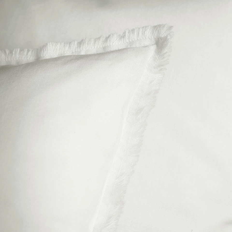 Matt & Rose Set Kussenslopen Gewassen Katoen, Wit. Een prachtige set kussenhoezen van gewassen katoen. Door de wassing heeft het materiaal een lichte kreukel, waardoor het een trendy uitstraling krijgt en strijken overbodig is. Gewassen katoen is uiterst zacht en soepel en zorgt daardoor voor comfortabele nachten. De kussenslopen hebben een franje rand, wat een leuk effect geeft.