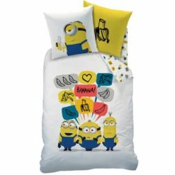 Minions Dekbedovertrek Banana. De Minions zijn gek van bananen! Voor fans van de grappige Minions is dit eenpersoons, katoenen dekbedovertrek een geweldige aanwinst voor de slaapkamer. Combineer dit dekbedovertrek met het Minions Banana hoeslaken voor een passende set.