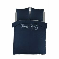 Dit stoere Percale-katoen dekbedovertrek met de tekst “Bonne Nuit” is een aanwinst voor in je slaapkamer! Het is een makkelijk te combineren dekbedovertrek die zeer stijlvol en trendy is. Niet alleen is het trendy maar het is ook heel comfortabel. Het is gemaakt van 100% Percale-katoen dit is het meest luxe katoensoort die er is. Het is een zeer stevige stof maar niet zwaar in gewicht! De stof is glad, een natuurlijk materiaal, met een hogere weefdichtheid en garenfijnheid waardoor het niet snel gaat pillen en blijft daarom lang mooi, dus het is ook nog eens duurzaam! In combinatie met de ademende en vocht absorberende eigenschappen van katoen is dit ideaal voor alle seizoenen het is lekker cool in de zomer maar ook lekker warm in de winter.