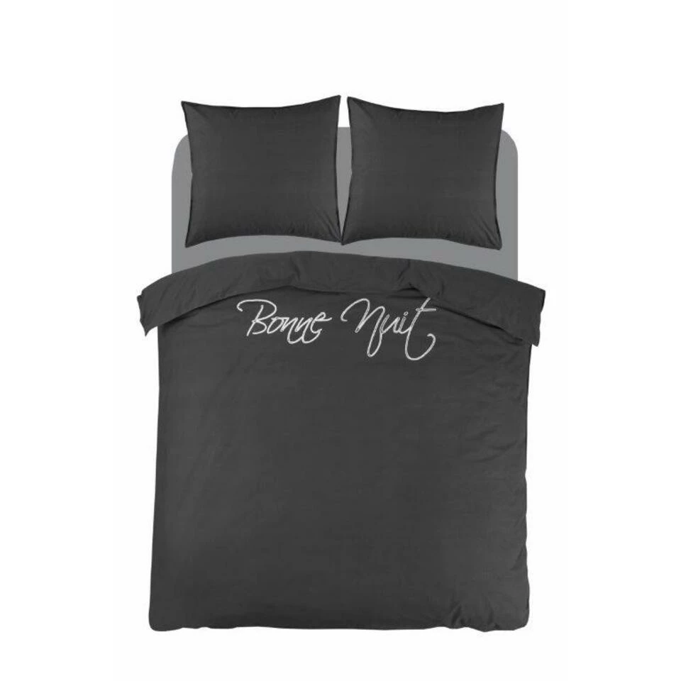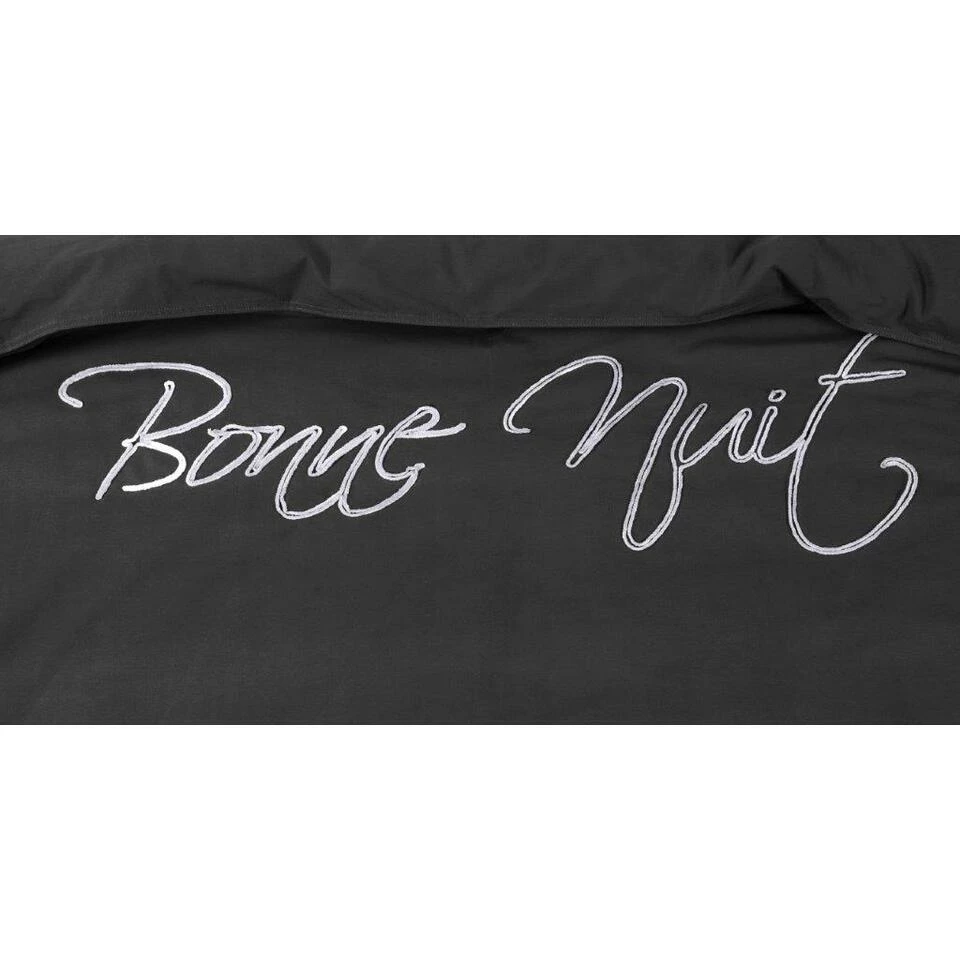 Dit stoere Percale-katoen dekbedovertrek met de tekst “Bonne Nuit” is een aanwinst voor in je slaapkamer! Het is een makkelijk te combineren dekbedovertrek die zeer stijlvol en trendy is. Niet alleen is het trendy maar het is ook heel comfortabel. Het is gemaakt van 100% Percale-katoen dit is het meest luxe katoensoort die er is. Het is een zeer stevige stof maar niet zwaar in gewicht! De stof is glad, een natuurlijk materiaal, met een hogere weefdichtheid en garenfijnheid waardoor het niet snel gaat pillen en blijft daarom lang mooi, dus het is ook nog eens duurzaam! In combinatie met de ademende en vocht absorberende eigenschappen van katoen is dit ideaal voor alle seizoenen het is lekker cool in de zomer maar ook lekker warm in de winter.