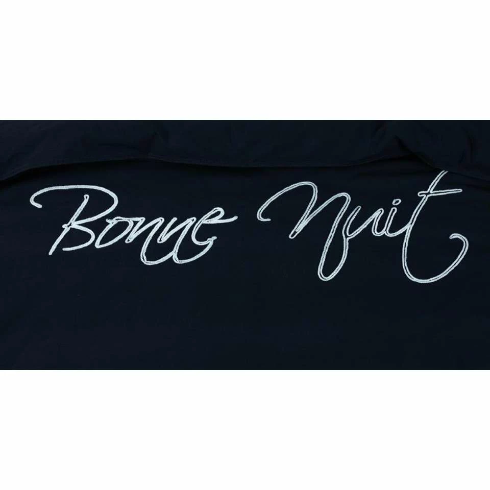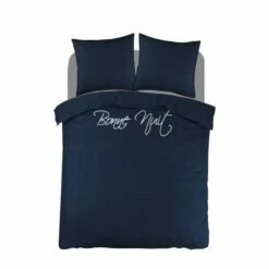 Dit stoere Percale-katoen dekbedovertrek met de tekst “Bonne Nuit” is een aanwinst voor in je slaapkamer! Het is een makkelijk te combineren dekbedovertrek die zeer stijlvol en trendy is. Niet alleen is het trendy maar het is ook heel comfortabel. Het is gemaakt van 100% Percale-katoen dit is het meest luxe katoensoort die er is. Het is een zeer stevige stof maar niet zwaar in gewicht! De stof is glad, een natuurlijk materiaal, met een hogere weefdichtheid en garenfijnheid waardoor het niet snel gaat pillen en blijft daarom lang mooi, dus het is ook nog eens duurzaam! In combinatie met de ademende en vocht absorberende eigenschappen van katoen is dit ideaal voor alle seizoenen het is lekker cool in de zomer maar ook lekker warm in de winter.