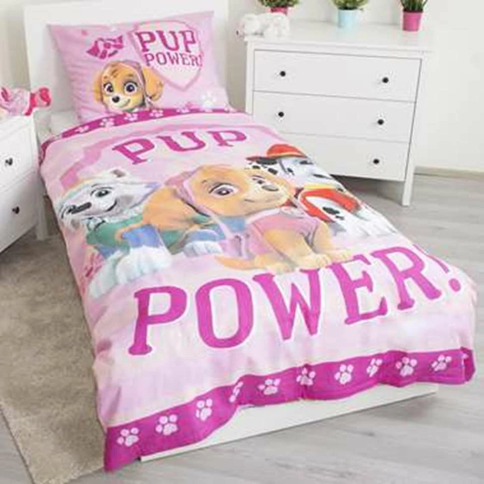 PAW Patrol Dekbedovertrek, Pup Power. De helden van PAW Patrol laten jou zien dat iedereen een held kan zijn! Volg jouw vrienden op hun avonturen met dit mooie dekbed. De onderkant is bedrukt met Skye, vliegend door de lucht!