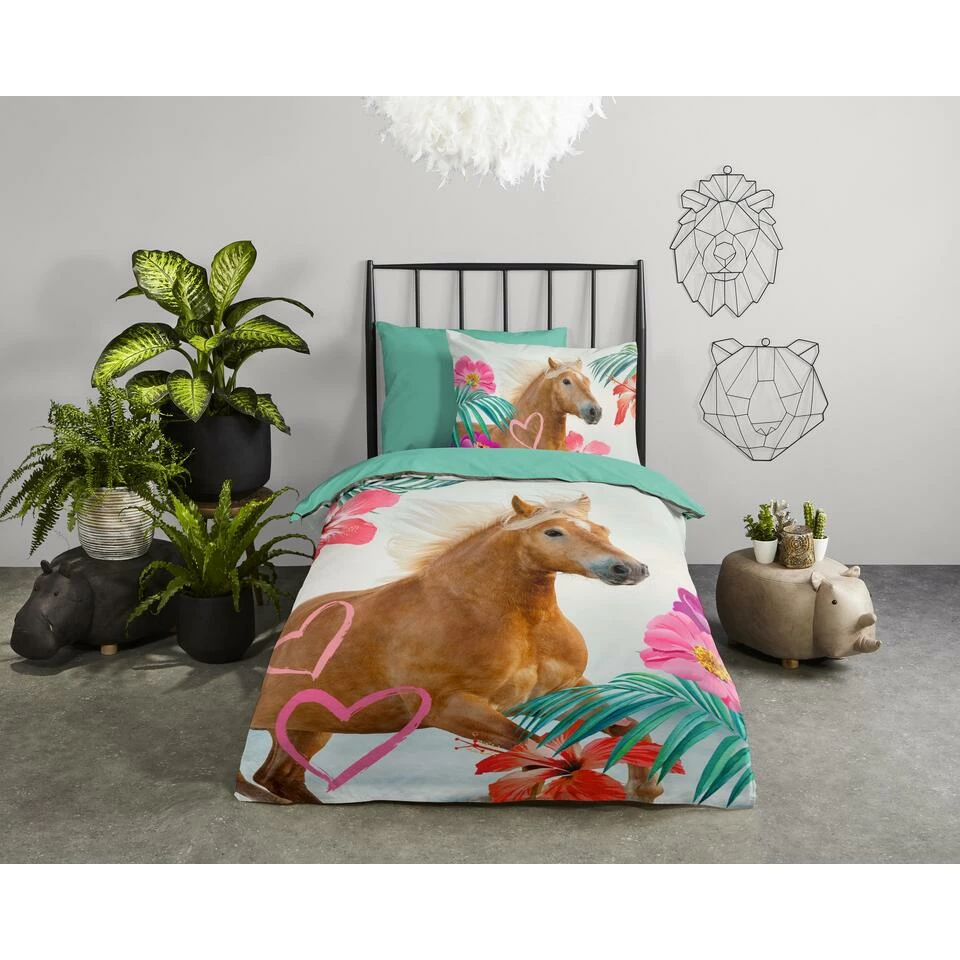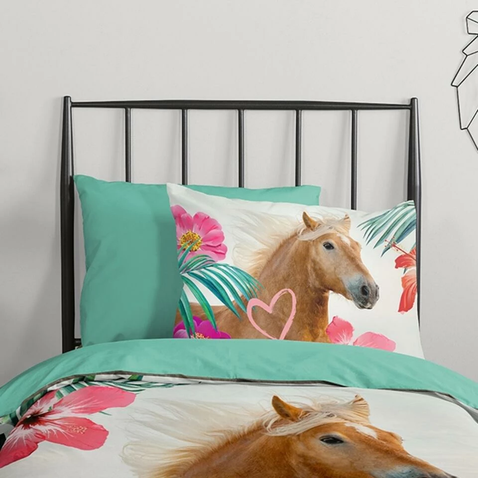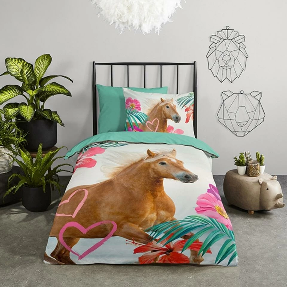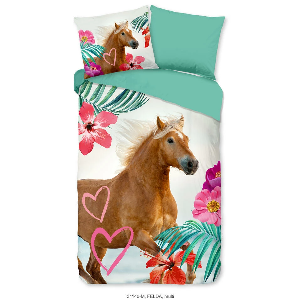 Dekbedovertrek “Felda” van Pure met paard, in de kleur “Multi” is gemaakt van 100% Microfiber. Het is een prettige stof, gemaakt van synthetische garen maar vergelijkbaar met het natuurlijke materiaal katoen, doordat het zacht en soepel aanvoelt. Het is geschikt voor ieder jaargetijde en door de lichte glans heeft het een luxe uitstraling. Na het wassen is deze stof snel droog en kreukt niet tot nauwelijks waardoor strijken (vrijwel) niet nodig is. Ook beschermt het tegen bacteri’n, vuil en huisstofmijt