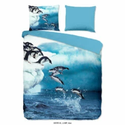 Dekbedovertrek “Jump” van Pure met pinguins, in de kleur “Blauw” is gemaakt van 100% Microfiber. Het is een prettige stof, gemaakt van synthetische garen maar vergelijkbaar met het natuurlijke materiaal katoen, doordat het zacht en soepel aanvoelt. Het is geschikt voor ieder jaargetijde en door de lichte glans heeft het een luxe uitstraling. Na het wassen is deze stof snel droog en kreukt niet tot nauwelijks waardoor strijken (vrijwel) niet nodig is. Ook beschermt het tegen bacteri’n, vuil en huisstofmijt