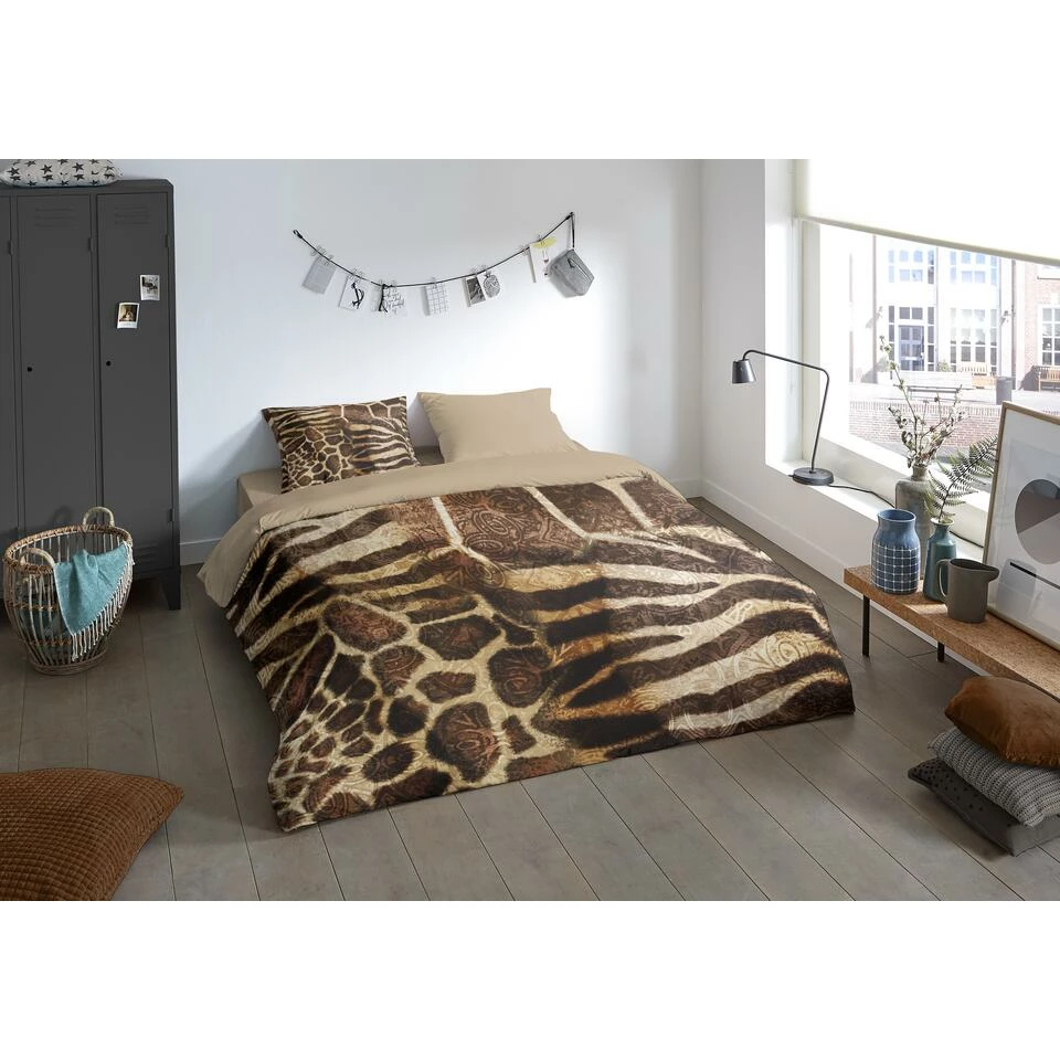Dekbedovertrek “Kinga” van Pure met dierenprint, in de kleur “Bruin” is gemaakt van 100% Microfiber. Het is een prettige stof, gemaakt van synthetische garen maar vergelijkbaar met het natuurlijke materiaal katoen, doordat het zacht en soepel aanvoelt. Het is geschikt voor ieder jaargetijde en door de lichte glans heeft het een luxe uitstraling. Na het wassen is deze stof snel droog en kreukt niet tot nauwelijks waardoor strijken (vrijwel) niet nodig is. Ook beschermt het tegen bacteri’n, vuil en huisstofmijt