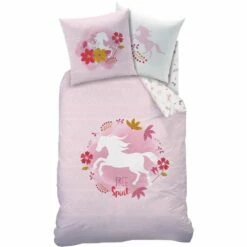 Spirit Dekbedovetrek Land. Roze dekbedovertrek met wit paard. Leuk cadeau voor ieder paardenmeisje. Een bijpassend hoeslaken is verkrijgbaar.